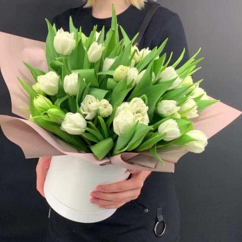 Шляпная коробка – 1 шт.Тюльпан пионовидный – 31 шт.подкормка для срезанных цветов – 1 шт.упаковка (аквапак) – 1 шт.