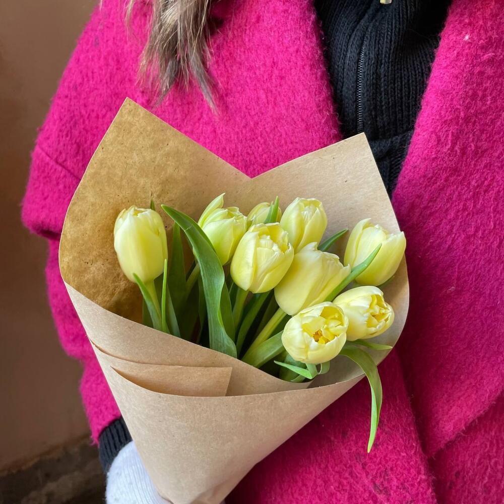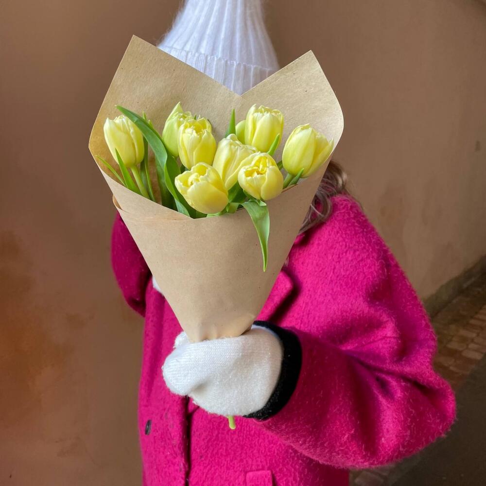 Крафтовая упаковка – 1 шт.лимонный пионовидный тюльпан – 9 шт.