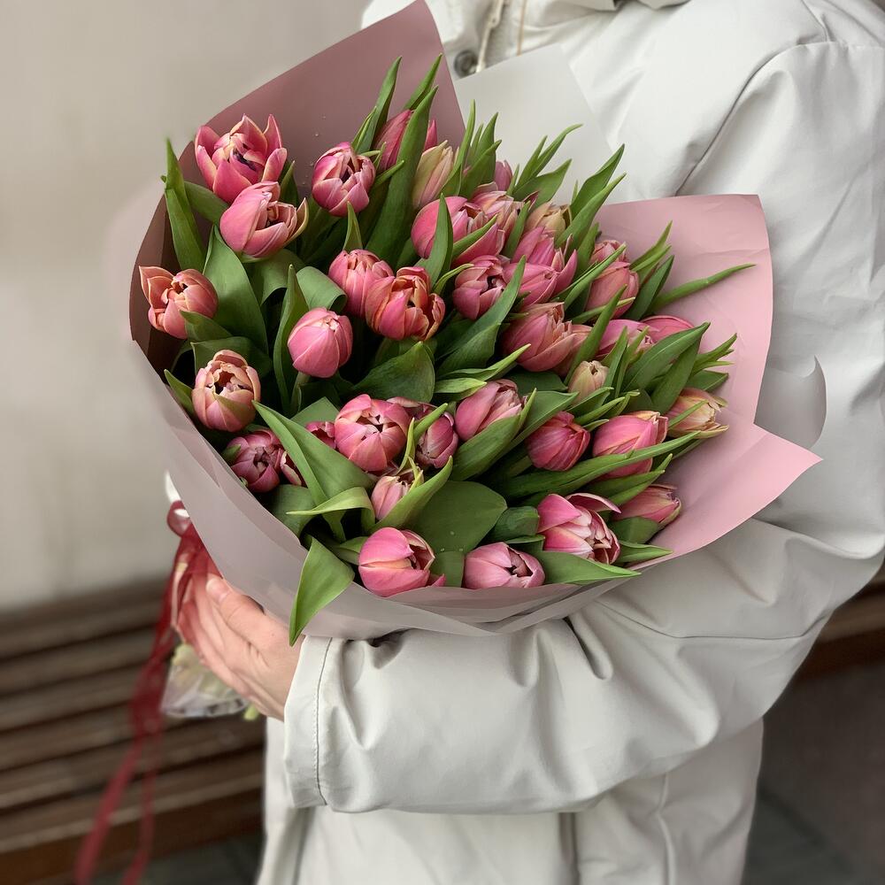 25 пионовидных сиреневых тюльпанов дабл прайс. Букет 200 Kimbirly Flowers