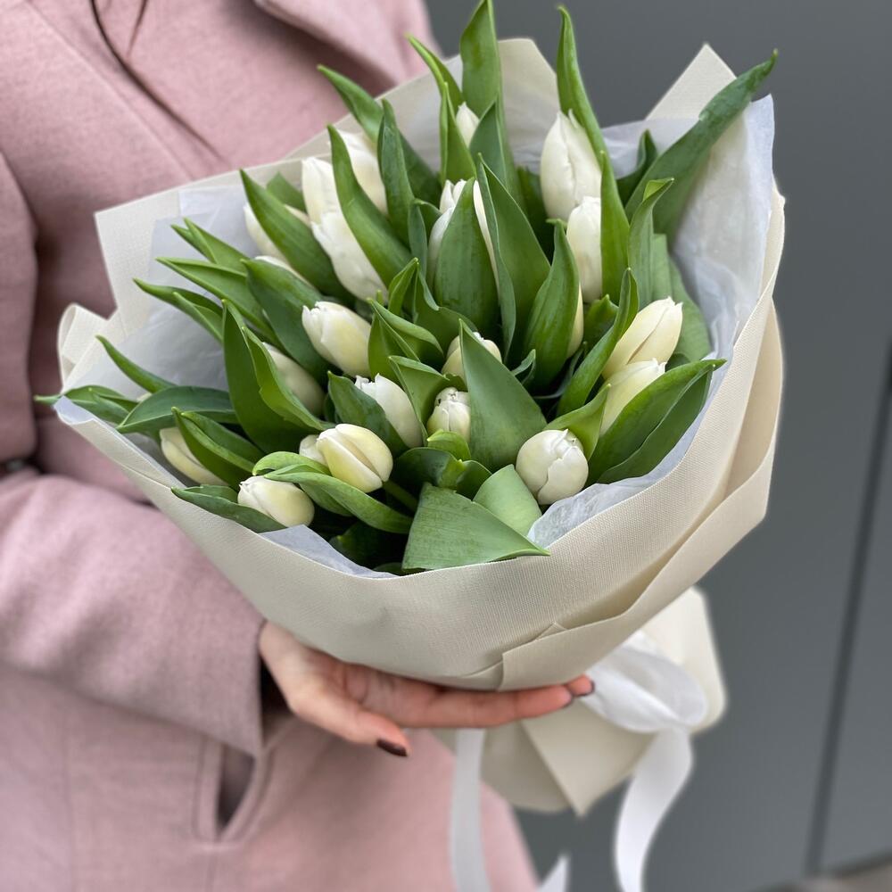 Букет Белые ночи из 25 белых тюльпанов