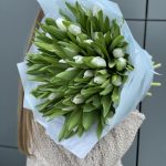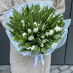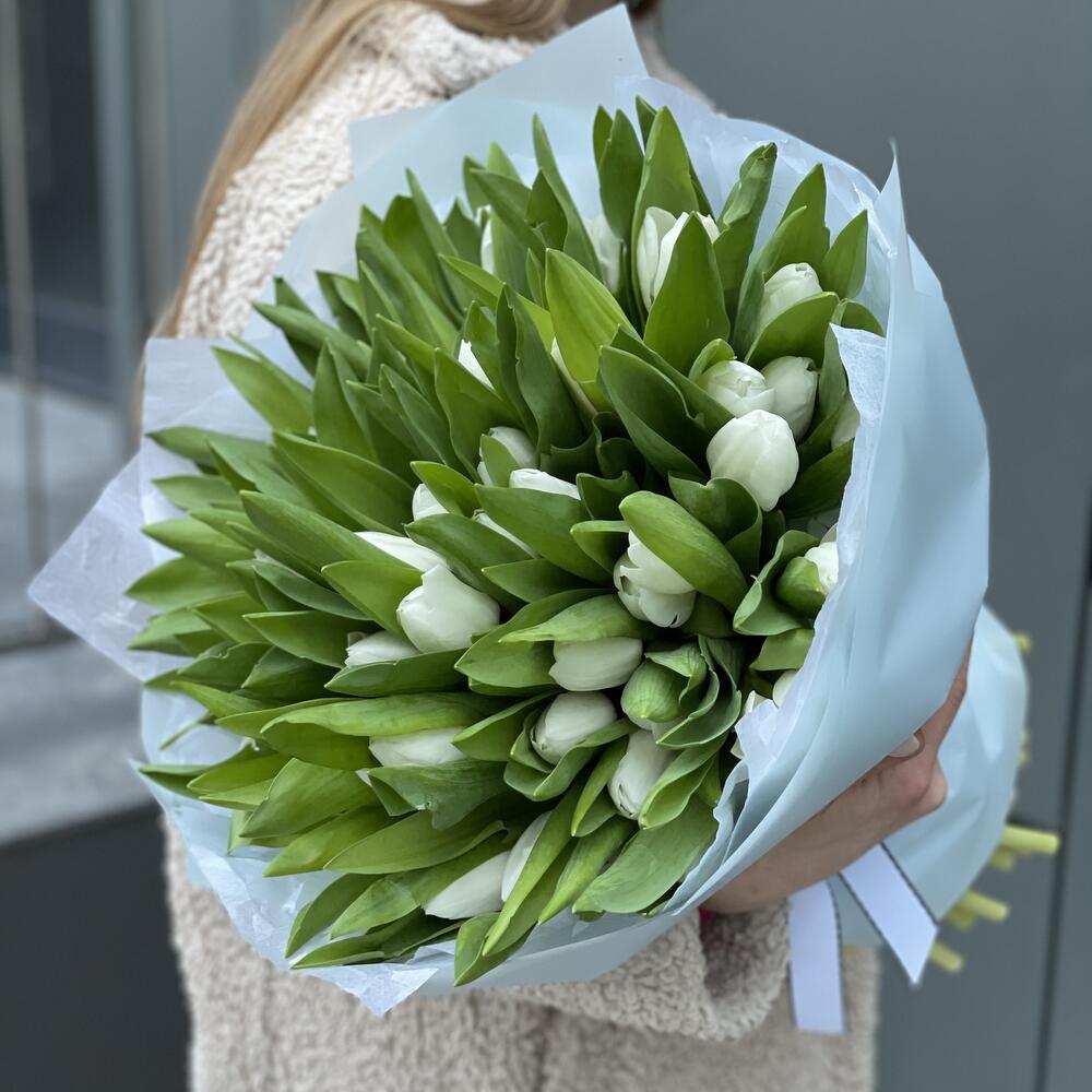 Букет из 51 белоснежного тюльпана сорта Royal Vergin в оформлении!
