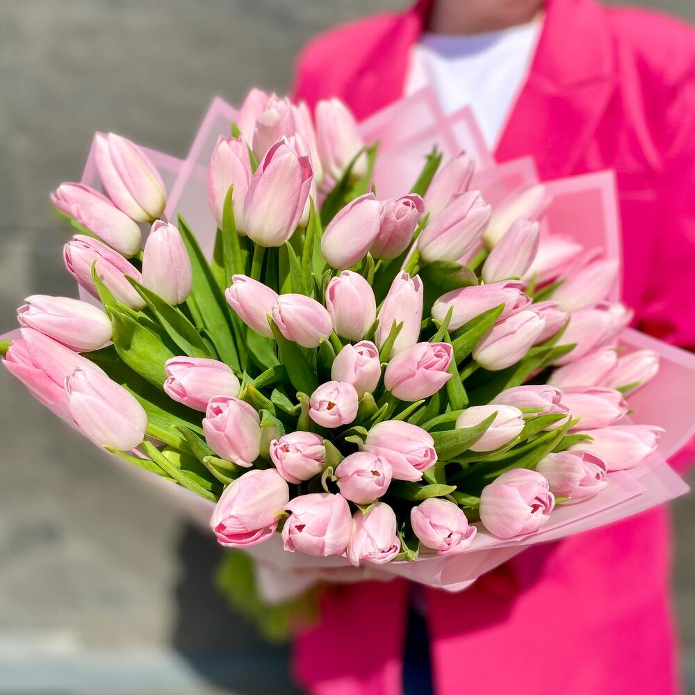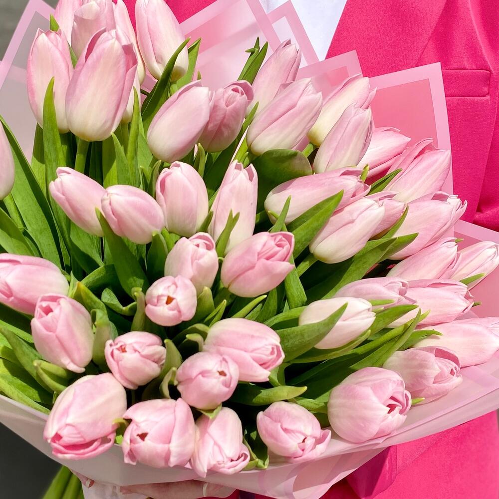 Букет премиум 51 нежно-розовых тюльпанов