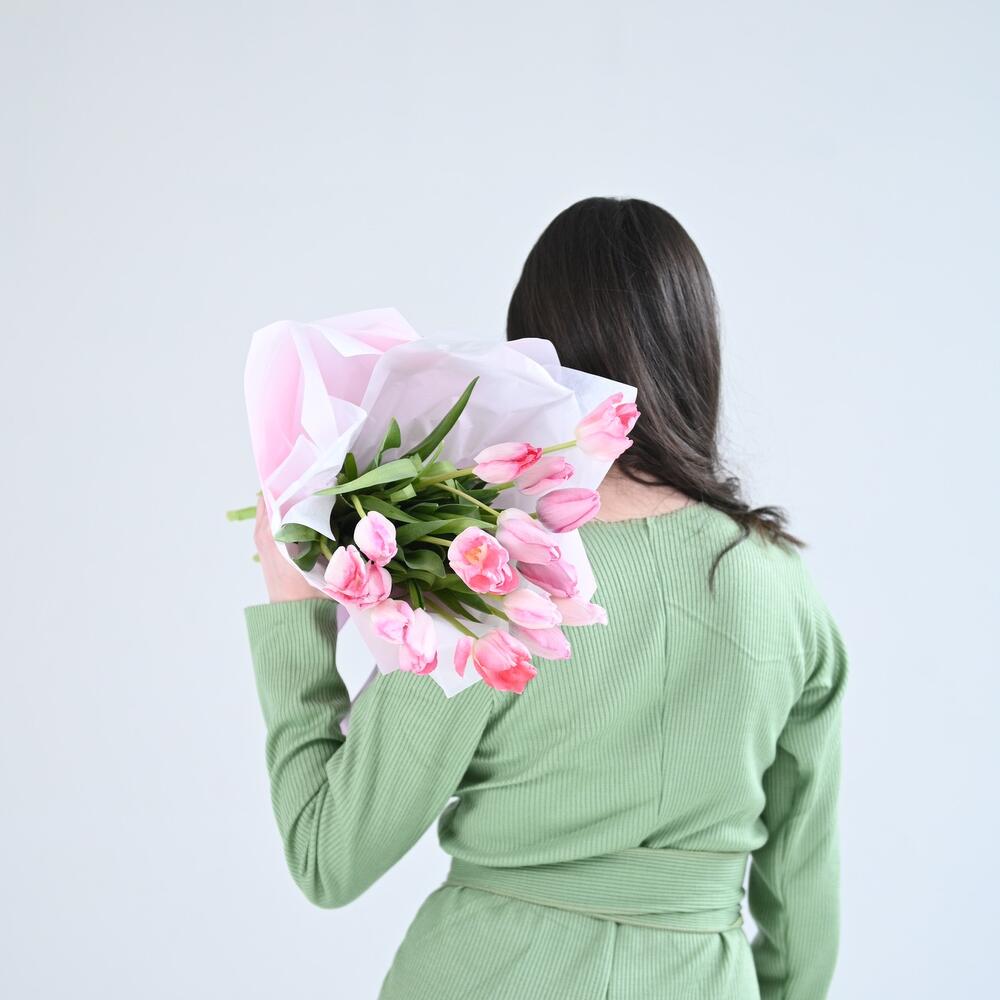 Тюльпан – 15 шт. Упаковка дизайнерская – 1 шт. Открыточка с вашими пожеланиями – 1 шт. инструкция по уходу за цветами – 1 шт.