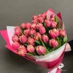 Лента атласная – 1 шт.Тюльпан пионовидный – 31 шт.Упаковка дизайнерская – 2 шт.