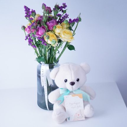 Teddy + Bouquet + vase
